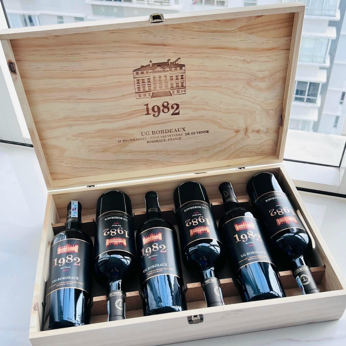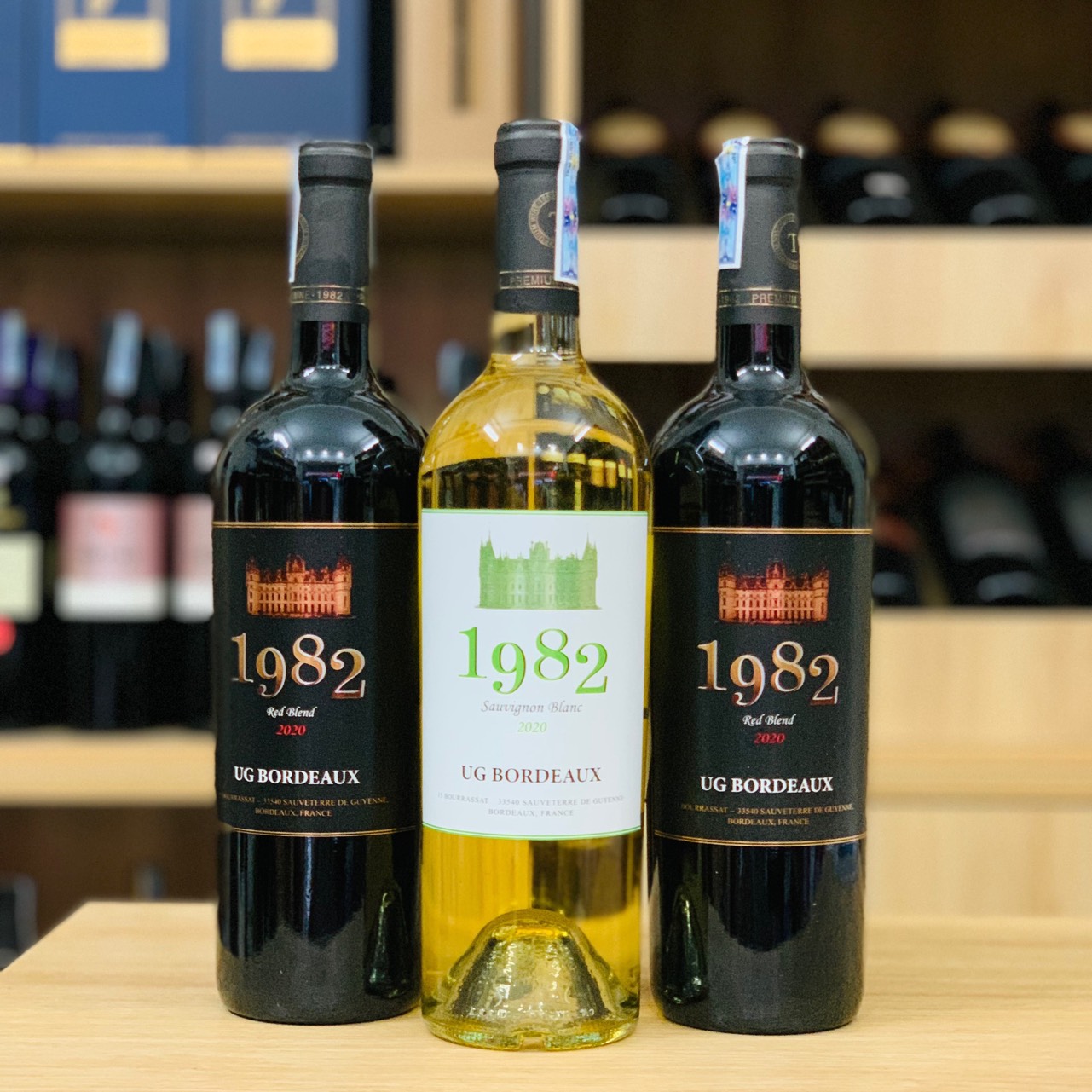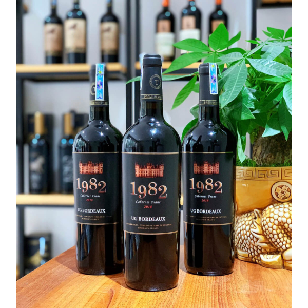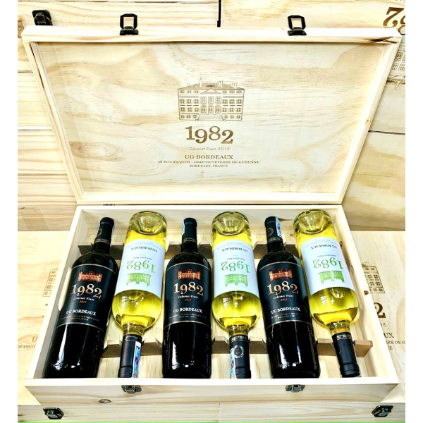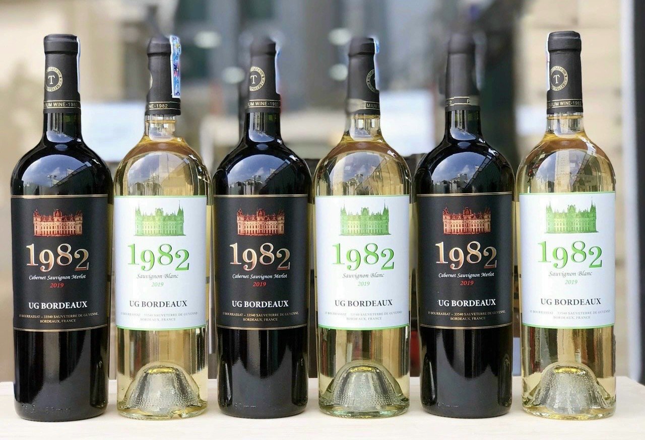Dòng rượu vang Pháp 1982 với thiết kế 2 dòng vang: vang đỏ 1982 và vang trắng 1982.