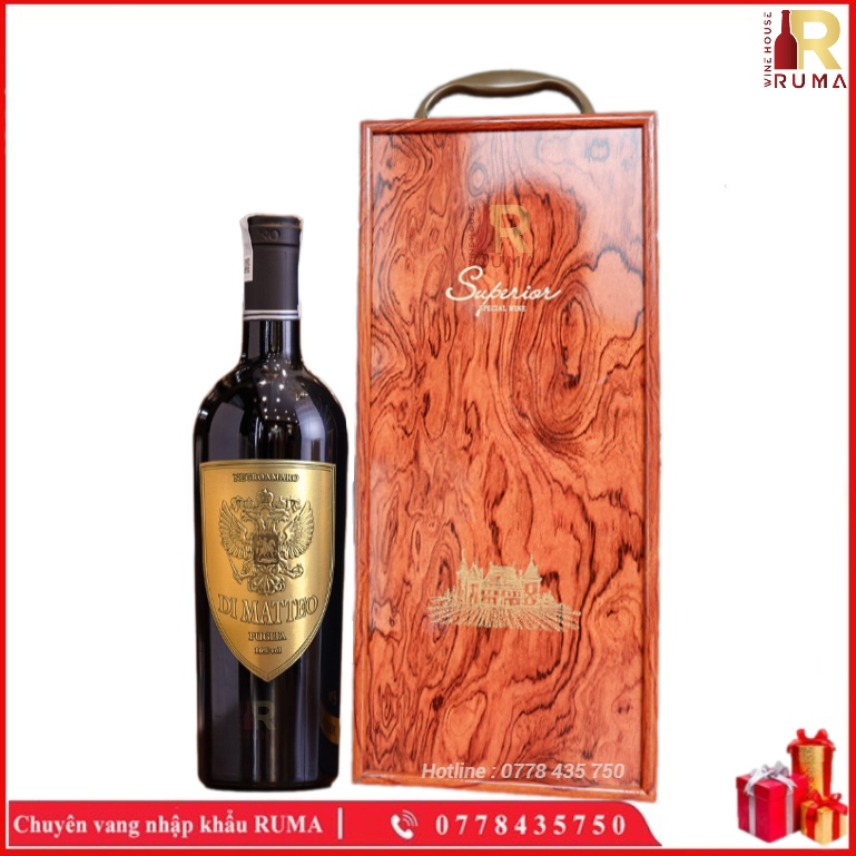 - Vang Ý Di Matteo là mẫu rượu vang đỏ với nồng độ trung bình 16%, được làm từ giống nho nổi tiếng Negroamaro.