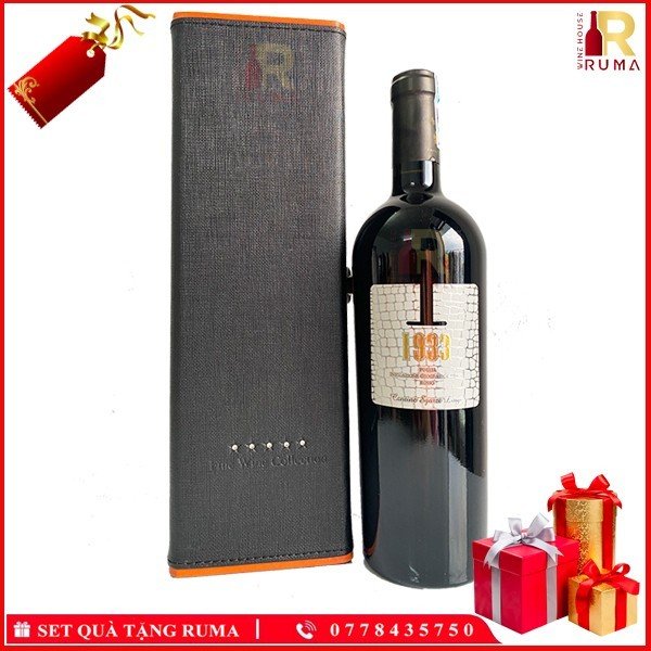 Set quà tặng hộp da 1 chai rượu vang Ý 1933 Rosso