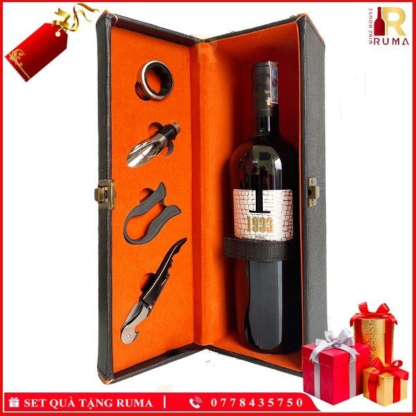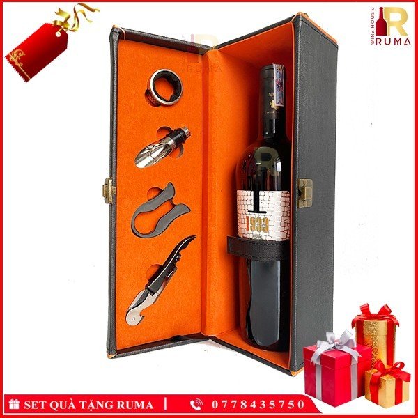 Set quà hộp da một chai vang Ý 1933 Rosso tại RUMA sẽ bao gồm: