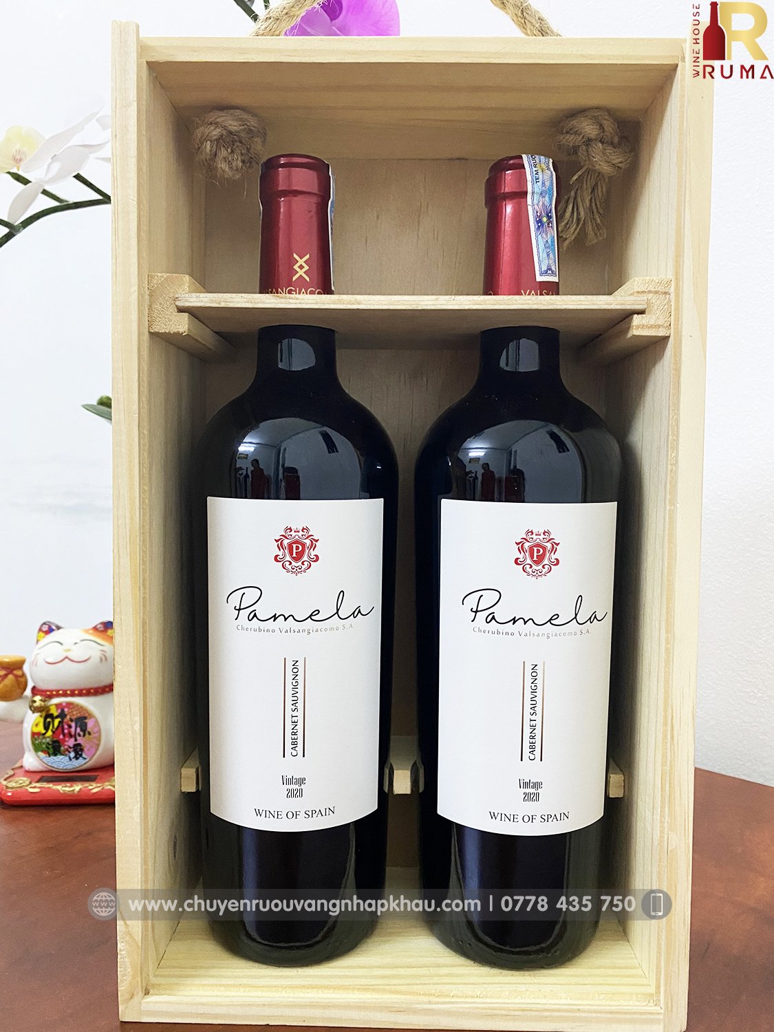• 2 chai rượu vang Tây Ban Nha Pamela nhập khẩu chính hãng.
