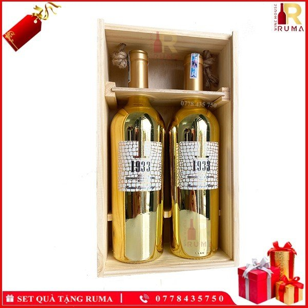 Set quà tặng hộp gỗ hai chai vang Ý 1933 Topaz tại RUMA sẽ bao gồm: