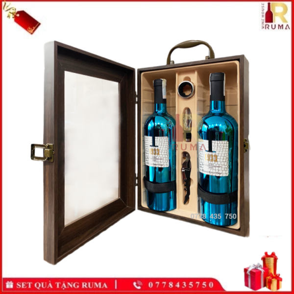 Set quà tặng hộp kính 2 chai rượu vang Ý 1933 Blue